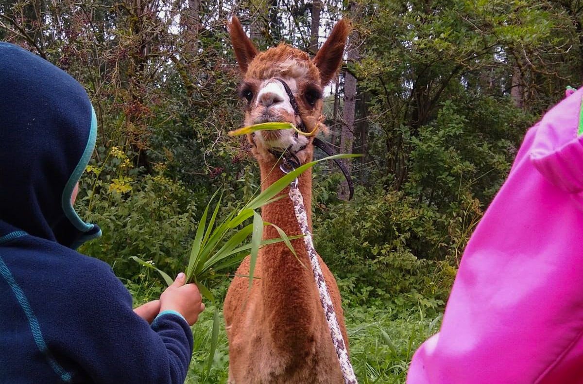 Sobald Eure Gruppe auf dem Bauernhof eingetroffen ist, kann der Spaß beginnen. Ihr werdet im Alpakastall eingewiesen und erfahrt Besonderheiten und Verhaltensweisen der ruhigen Tiere. Fragen sind herzlich willkommen. In der Kleingruppe ist genug Zeit, um auf alle Fragen individuell einzugehen. Sobald die liebevollen Alpakas gehalftert sind, schnappst Du Dir Deinen Partner und Ihr führt zu zweit das Alpaka. Dann werdet Ihr auch schon zum schönen Spazier-Gelände geführt.Ein gemütlicher Spaziergang