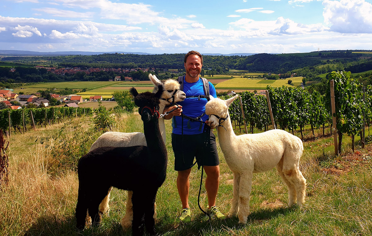 Eure Wanderung beginnt mit dem Kennenlernen der Alpakas, deren individuelle Charaktere den Tag bereichern. Während Ihr mehr über die Herkunft und Haltung der Tiere erfahrt, wählt Ihr gemeinsam die Route Eurer Wanderung – durch schattige Wälder oder über sonnige Höhen. Der eindrucksvolle Ausblick oberhalb der Mainschleife bietet den perfekten Ort für eine Pause, um die Stille zu genießen und unvergessliche Erinnerungen zu schaffen.
