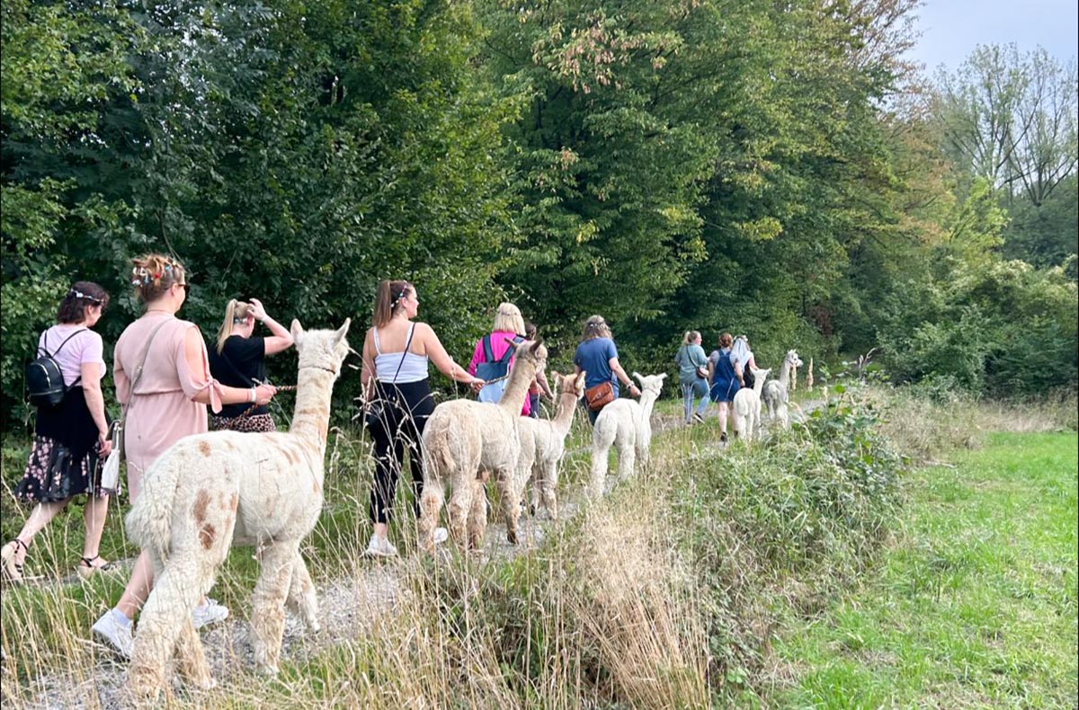 Mitten im idyllischen Ennigerloh erwartet Dich eine sanfte Alpaka Wanderung, die Deinen Feierabend zu etwas ganz Besonderem macht. Bei einem ruhigen Rundweg von etwa 3,5 Kilometern begleitest Du eines der gutmütigen Tiere durch die Natur, fern vom Alltag und Tempo. Vor dem Spaziergang erhältst Du einen liebevollen Einblick in Herkunft und Haltung der Alpakas und kannst eine erste Verbindung zu Deinem flauschigen Begleiter aufbauen. Die friedliche Atmosphäre und die Nähe zur Natur laden zum Durchatmen und Auftanken ein. Nach dem Walk klingt der Abend entspannt bei Flammkuchen aus dem Steinofen und einem kühlen Getränk im Hofcafé aus. Lass Dir diese wohltuende Zeit mit den Alpakas in Ennigerloh nicht entgehen.