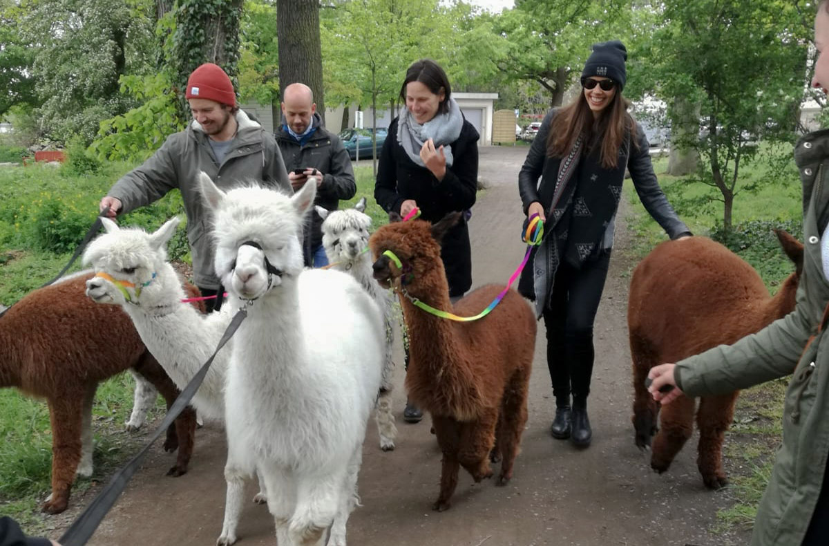 In einer kleinen Gruppe wandert Ihr gemütlich entlang des Kahnsdorfer Sees. Ihr erfahrt dabei bei der Alpaka Wanderung für 2 in Leipzig alles über die verschmusten Paarhufer. Fernab vom Großstadtlärm dürft Ihr für 2 Stunden abschalten und Eure Hände im wolligen Fell der Alpakas vergraben. Die süßen Fellnasen laden zum Kuscheln ein und machen Eure Wanderung dadurch zu einem unvergesslichen gemeinsamen Erlebnis.