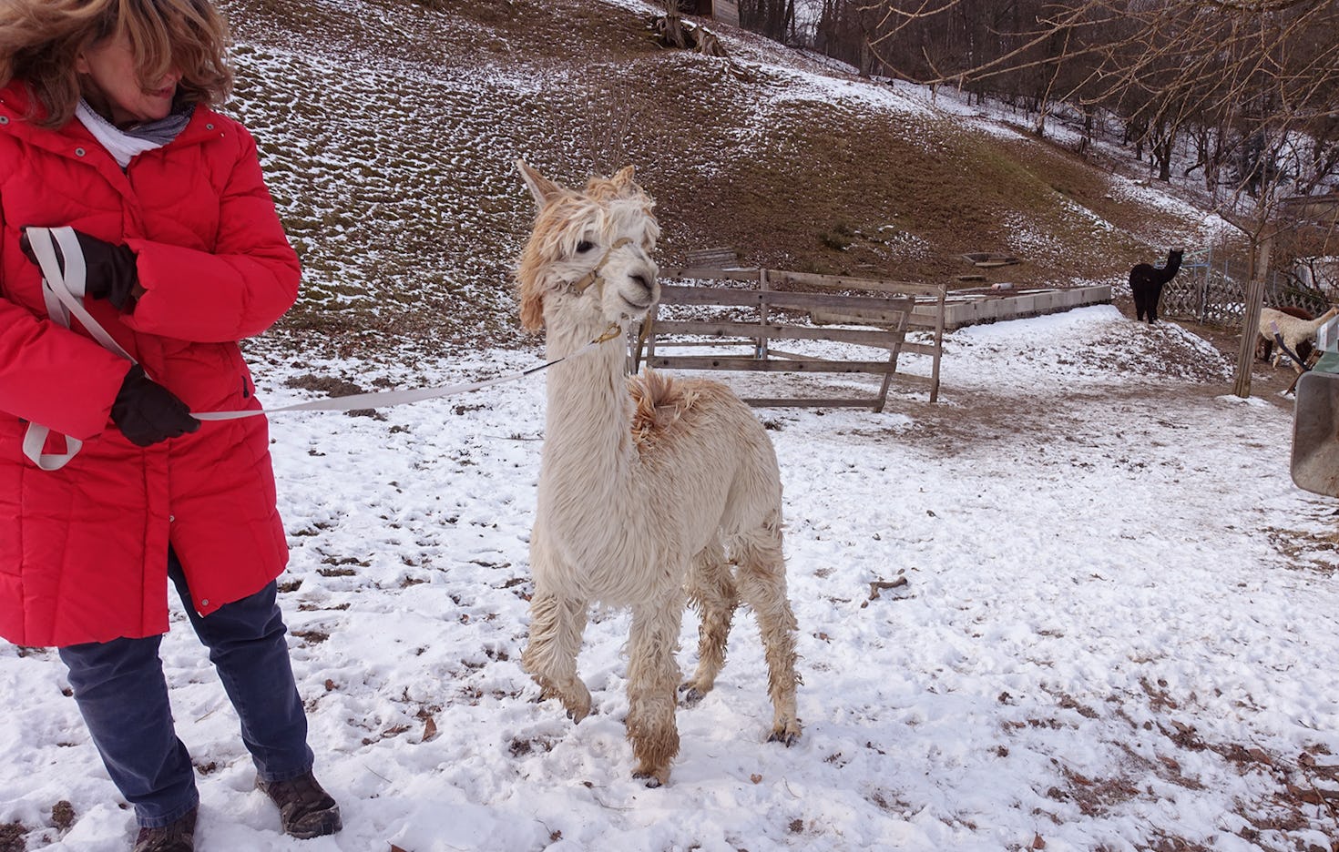 Ihr streichelt durch das kuschelige Fell und jeder von Euch hat sofort eine besondere Bindung zu einer der Fellnasen. Nun kann die Wanderung starten und Ihr dürft mit Eurem flauschigen Begleiter den Weg bestreiten.