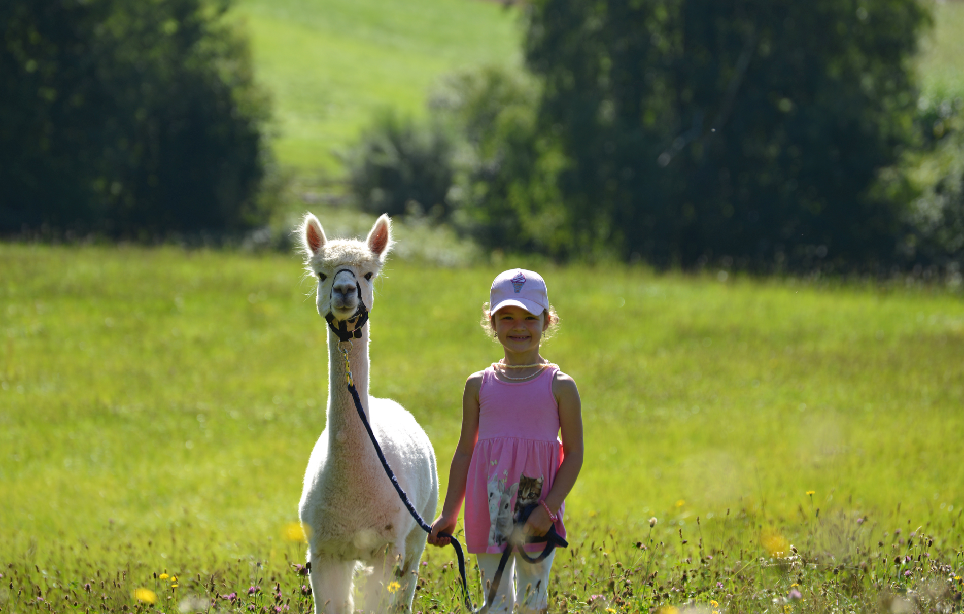 Beim Wandern mit Alpakas in Iggensbach spaziert Du mit Deinem kuscheligen Wanderpartner im Einzugsgebiet des Bayerischen Waldes. Es wartet also ein echtes Naturerlebnis auf Dich. Nach der Tour über saftige Wiesen, begleitet vom Duft hoher Fichten, ist noch etwas Zeit, um im Hofladen zu stöbern. Außerdem kannst Du neben den braun-gescheckten Alpakas noch Freundschaft mit den Hasen, Pferden, Hühnern und Hausschwein Erich schließen.