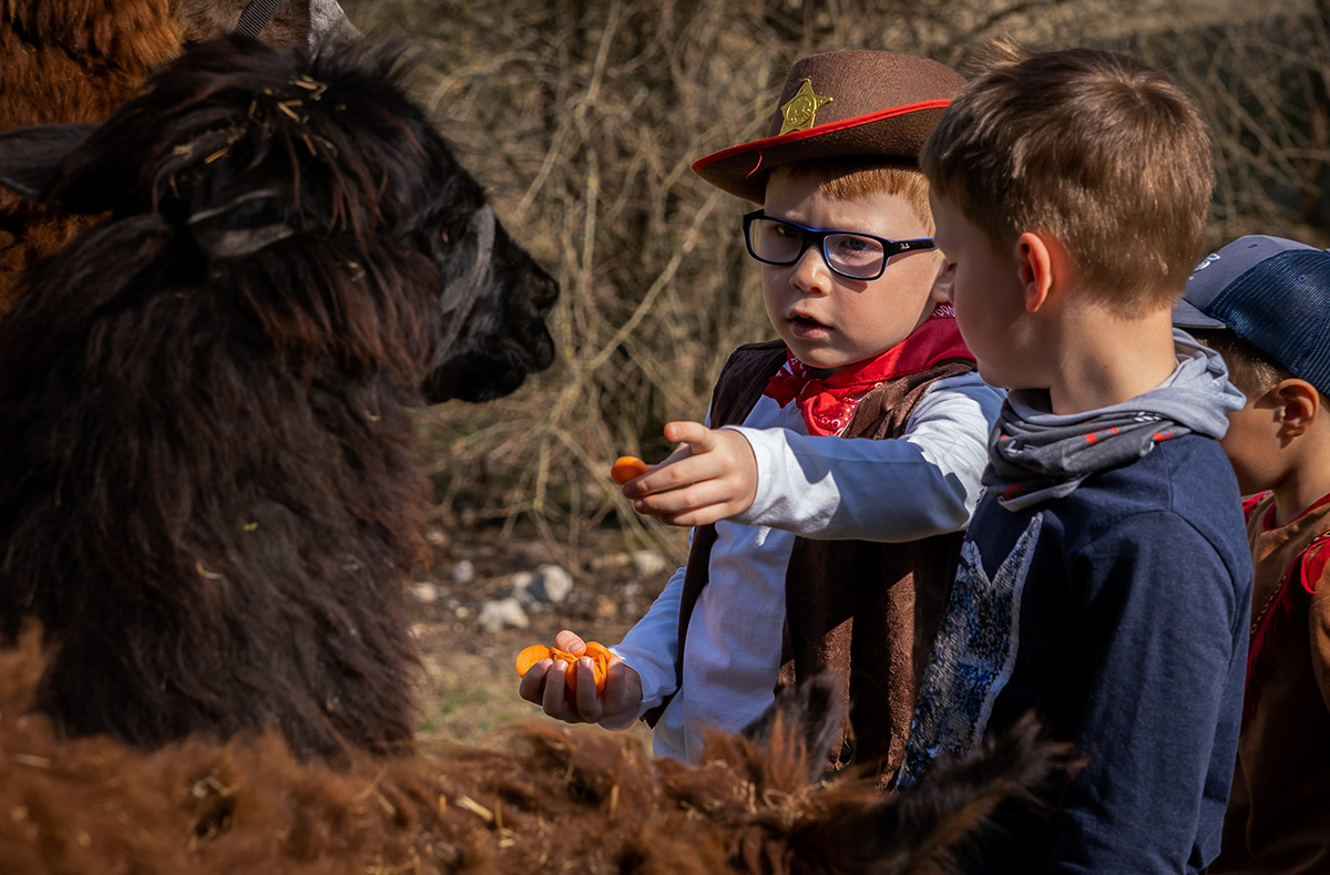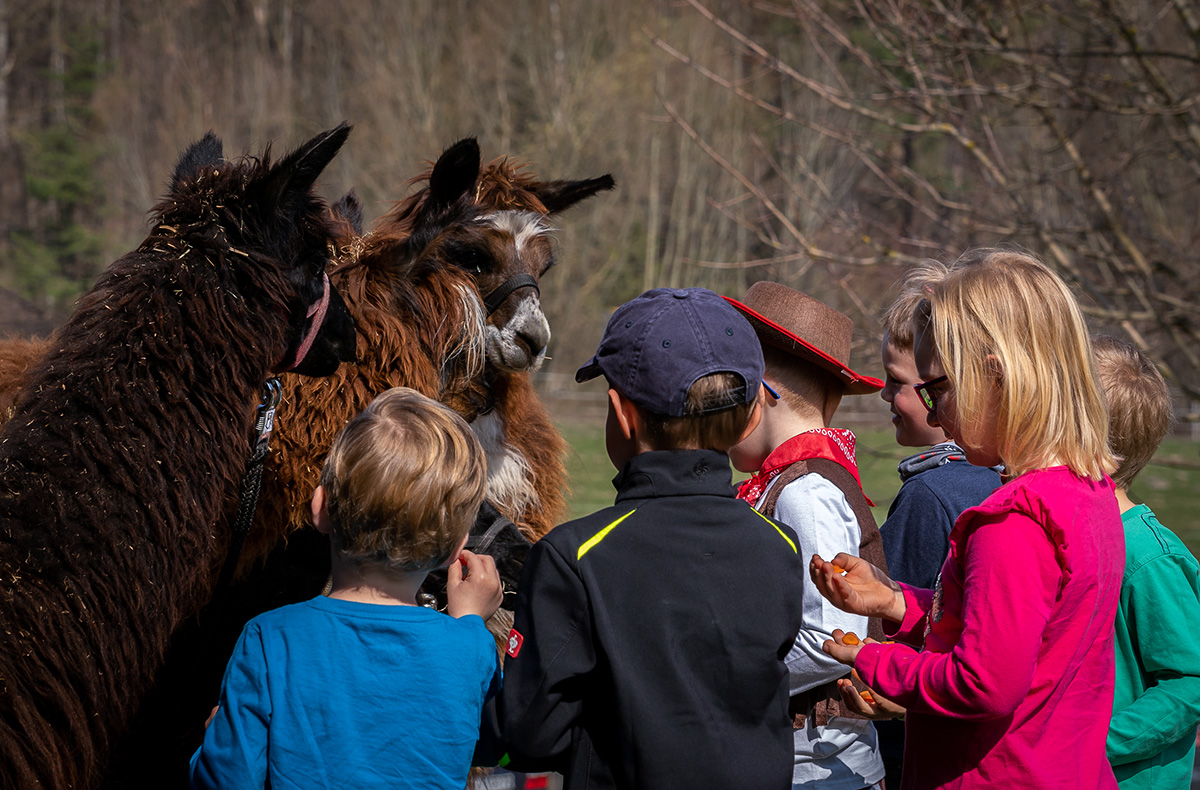 Fest verbunden an einer Leine stapft Ihr zusammen durch die nahegelegenen Wälder und Wiesen. Treu bleibt das kleine Lama an Deiner Seite. Du hörst das Rauschen der Bäume und das Tapsen der Füße. Bei ihrer ruhigen und süßen Art merkst Du gleich wie die gute Energie der Tiere auf Dich abfärbt. Für Pausen und Streicheleinheiten bleibt Ihr stehen. Wieder am Hof angekommen, verabschiedest Du Dich von Deinem Freund mit Kuscheleinheiten und einer kleinen Fotosession.