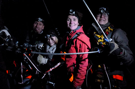 Das Sicherheits-Equipment und Stirnlampe werden gestellt.