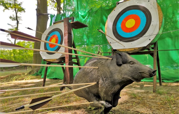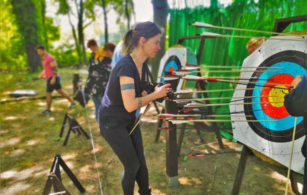 Beim Bogenschießen in Berlin kannst Du den vollen Umfang des Bogensports austesten. Du schießt unbewegliche und bewegliche Ziele mit unterschiedlichen Oberflächen. Eine echte Herausforderung! Hier ist gutes Gespür für Pfeil und Bogen gefragt. Hast Du eine ruhige Hand oder geht der Pfeil daneben? Außerdem lernst Du die Basics zum Thema Fluglinie und Abschusswinkel. Mit all diesem Wissen ausgestattet, kannst Du nun den Parkour bezwingen und triffst sicherlich ins Schwarze.
