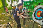 Bei Deinem Termin zum Bogenschießen brauchst Du bloß ein Paar scharfe Augen mitzubringen. Im Strandbad Plötzensee triffst Du Deinen Bogensport-Lehrer unter hohen, alten Kastanien im Schatten. Höre gut zu, bei der Einweisung erfährst Du, mit welchen Pfeilen auf welche Ziele geschossen werden darf. Danach wirst Du mit Bogen, Pfeilen und Armschutz ausgestattet und kannst Deine ersten Probeschüsse machen.Bogenschießen soll geübt sein