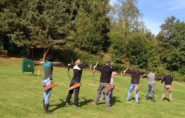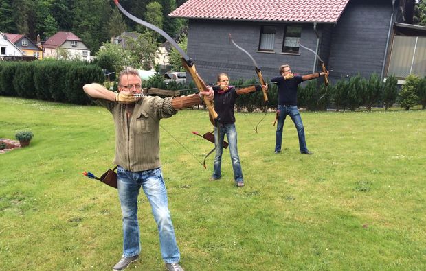 Atme die gute Thüringer Bergluft ein und setze das Gelernte und den sicheren Umgang mit dem Bogen gleich um. Beim Grund- und Aufbaukurs Bogenschießen in Rohrbach kannst Du die Faszination und Inspiration des Bogenschießens hautnah erleben. In der malerischen Landschaft direkt am Gästehaus, wo Buchungen von Übernachtungen möglich sind, lernst Du den Umgang mit verschiedenen Bögen.
