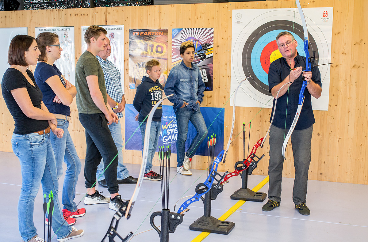 - Leih Equipment mit Recurve-Bogen