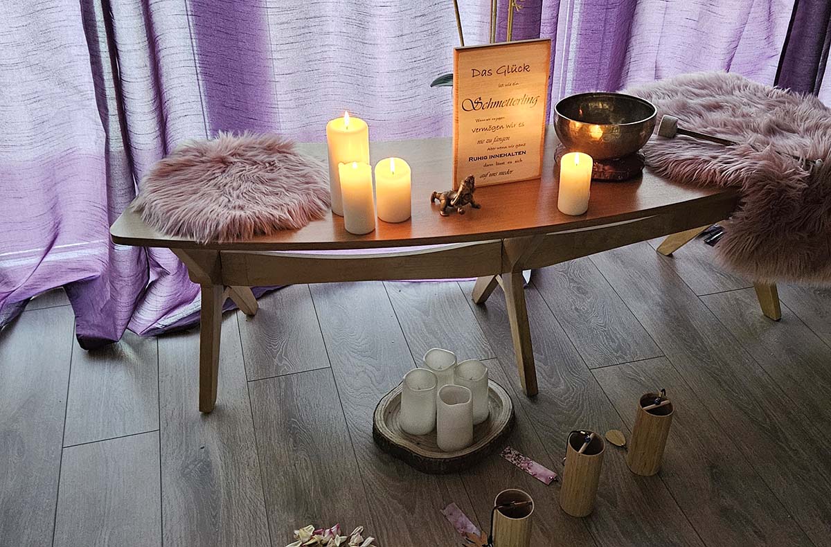 - Begleitung durch Klangschalen und Kerzenlicht während der Sitzung