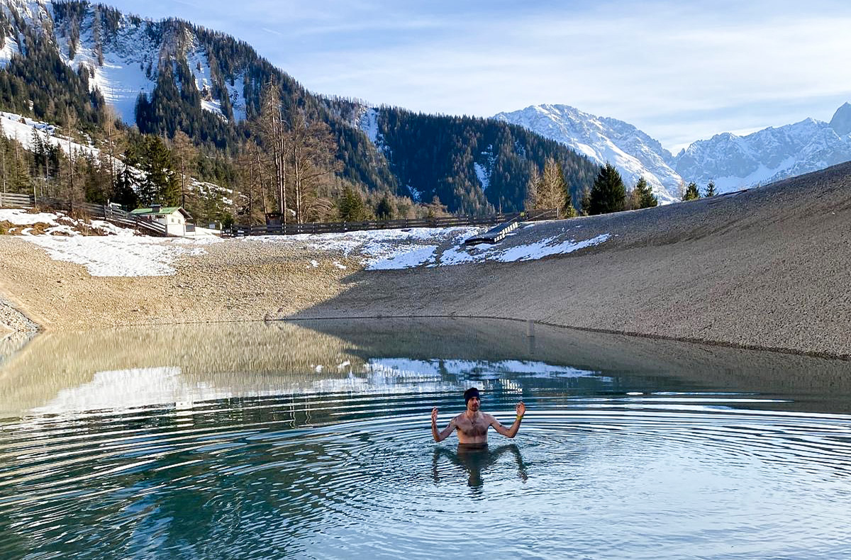Ein besonderer Moment erwartet Euch beim Eisbaden in Ehrwald – eingebettet in die verschneite Bergwelt am Fuße der Zugspitze. Auf einer geführten Tour gelangt Ihr gemeinsam durch die stille Winterlandschaft zu einem klaren Bergsee, der wie geschaffen ist für ein eindrucksvolles Naturerlebnis. Nach einer sanften Wanderung begleitet Euch ein erfahrener Guide Schritt für Schritt, bis Ihr sicher und achtsam in das kalte Wasser eintaucht. Der erste Impuls mag zurückhaltend sein, doch schon bald spürt Ihr die kraftvolle Ruhe und die lebendige Frische auf der Haut. Diese Zeit zusammen schafft Erinnerungen, die tief wirken – ein stilles, tief berührendes Erlebnis der besonderen Art. Lasst Euch inspirieren und verbringt bewusste Gemeinsamezeit inmitten der winterlichen Natur.