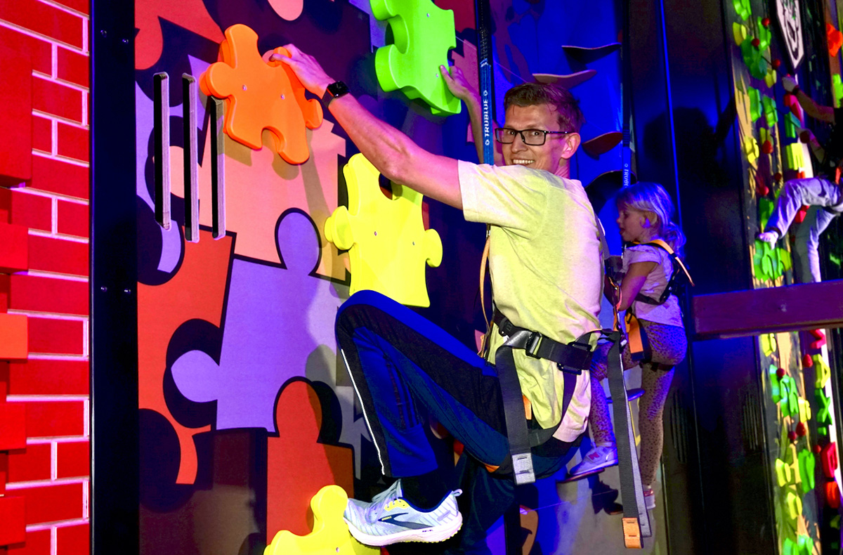 In der Fun Arena Berlin erwartet Dich eine farbenfrohe Welt des Erlebniskletterns, die Kletterspaß auf eine ganz neue Ebene bringt. Mit liebevoll gestalteten Kletterelementen wie einem leuchtenden Spinnennetz oder den fantasievollen Bambo-Bäumen bietet die Kletterhalle Berlin vielfältige Eindrücke für Körper und Sinne. Besonders eindrucksvoll ist der Bereich mit Schwarzlicht. Hier leuchten Wände, Strecken und Griffe in kräftigen Farben und verleihen jeder Bewegung eine ganz besondere Atmosphäre. Das Klettern in der Fun Arena verbindet Kreativität mit Bewegung und schenkt unvergessliche Momente voller Staunen. Wenn Du Dir eine lebendige Erinnerung schaffen möchtest, die noch lange nachklingt, ist dieser Ort genau das richtige Ziel für Deinen nächsten Ausflug.