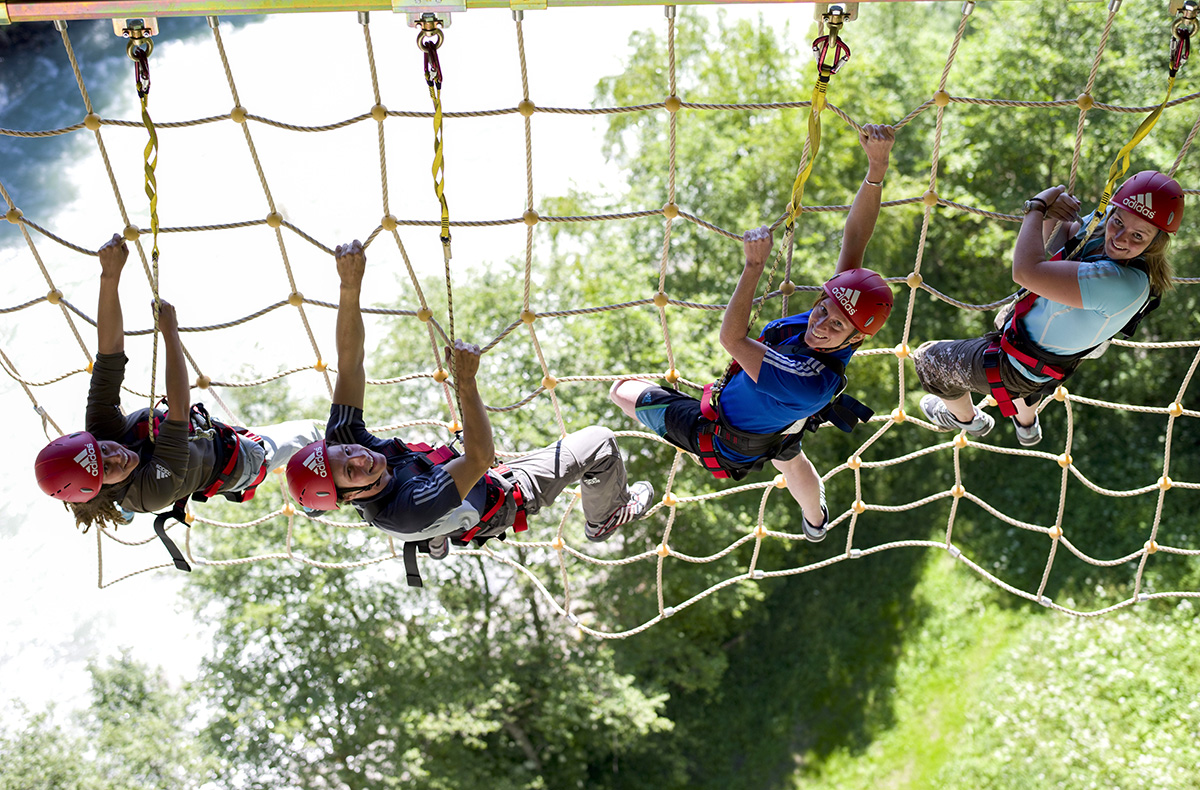 Dein Weg führt über wackelige Holzbalken und Seilnetze über den Abgrund durch den höchsten Hochseilgarten Österreichs. Bestens gesichert geht es langsam aber sicher durch den Parcours in 30 Meter Höhe. Anschließend rast Du am Drahtseil beim Flying Fox durch die Lüfte und genießt grandiose Aussichten.
