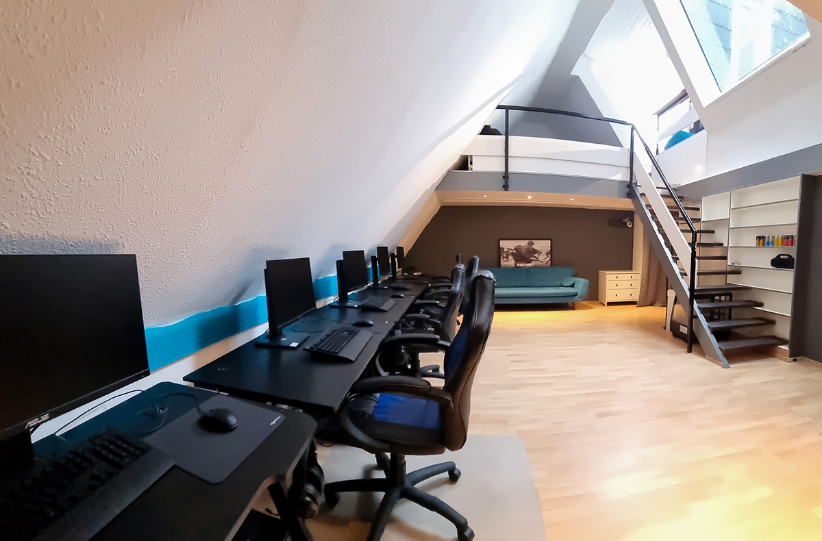 3 voll ausgestattete Gamingplätze, 3 High-End PCs, Highspeedinternet mit 1000 Mbits (Download) und 50 Mbits (Upload)