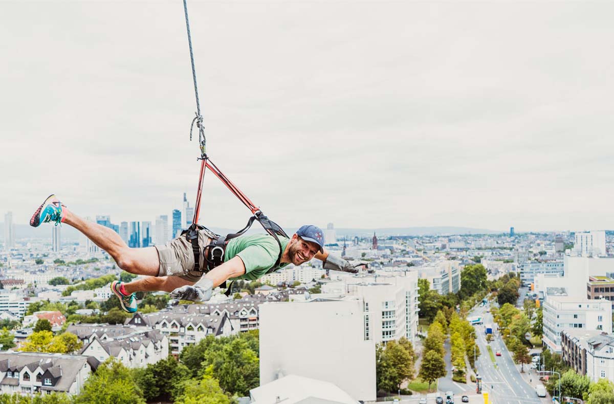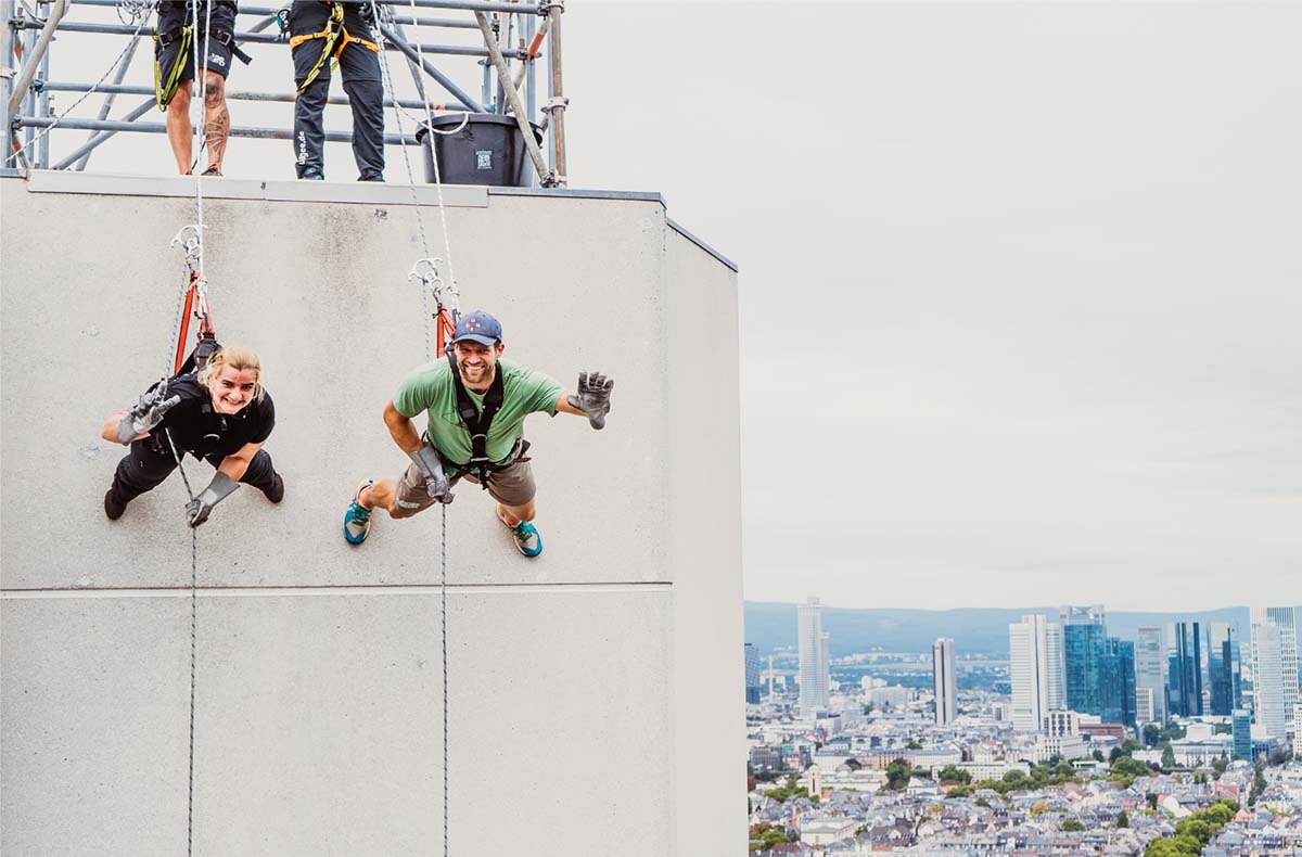 Hier treffen aufregendes Herzklopfen und wunderschöne Aussichten aufeinander und bilden die perfekte Kombination für Dein nächstes Abenteuer. Beim House Running in Frankfurt handelt es sich um einen Spaziergang der besonderen Art: Mit dem Blick in Richtung Boden geht es auf ganzen 100 Metern an einer Hauswand entlang abwärts.
