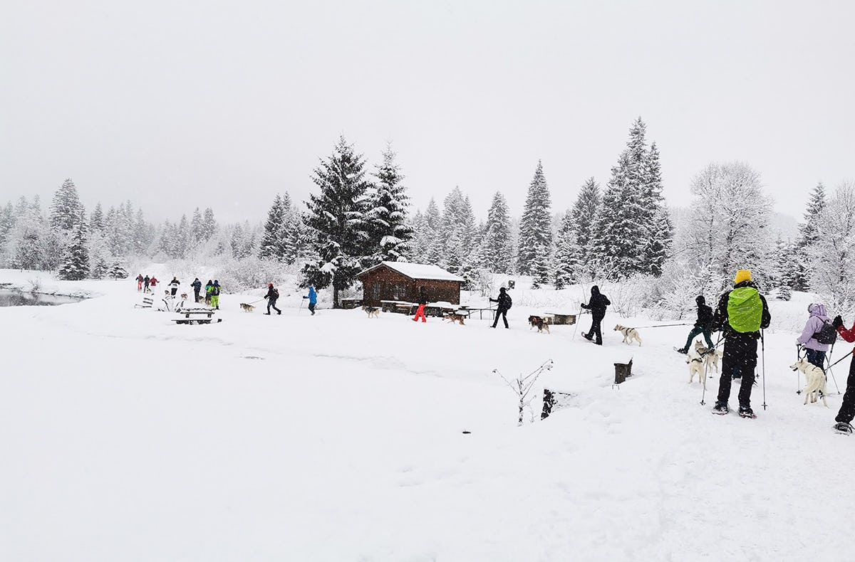 • Schneeschuhtrekking mit Siberian Huskies in traumhafter Winterlandschaft