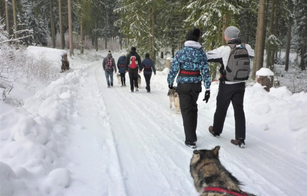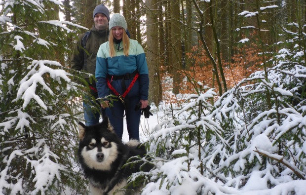 Während der Wanderung ist ein erfahrener Musher, also ein Schlittenhundeführer anwesend. Er wird Dich mit spannendem Hintergrundwissen über die Pflege und Haltung von Huskies und das Rudel in Rüthen versorgen. Für einen kurzen Moment schließt Du die Augen und lässt Dich ganz von Deinem vierbeinigen Partner leiten. Dabei spürst Du die einzigartige Verbindung zwischen Euch und verstehst, warum der Hund als bester Freund des Menschen gilt. Nach der Hälfte des dreistündigen Husky Trekkings in Rüthen sucht Ihr Euch ein nettes Plätzchen zur Rast im Wald. Beim warmherzigen Hundeblick der Huskies kannst Du einfach nicht anders, als ihnen das ein oder andere Leckerlie zuzustecken. Selbstverständlich bleibt auch noch genügend Zeit zum Kuscheln, Spielen und Erinnerungsfotos machen, bevor es wieder zurückgeht.Überrasche mit einem Husky Trekking in Rüthen und bring die Augen Deines liebsten Tierfreunds zum Leuchten.