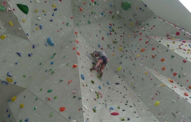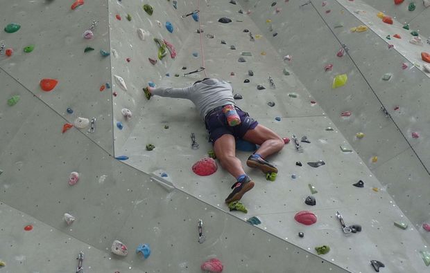 Dafür bekommst Du die Kletterausrüstung gestellt und kannst Dich nun in der perfekten Montur den bunten Wegmarkierungen der Wand widmen. Beim Toprope-Klettern wird das Seil oben eingehängt und Dein Betreuer sichert Dich vom Boden aus. So kann rein gar nichts passieren und Du kannst Dich ganz auf das Erklettern der Kletterwand fokussieren. Hangle Dich Meter um Meter nach oben und versuche, nicht aus dem Tritt zu kommen. Schaffst Du es ohne Probleme nach oben oder baumelst Du schon einmal in der Luft? Jetzt ist Dein Ehrgeiz angestachelt und Du versuchst es immer wieder. Dabei macht der Kletterkurs nicht nur viel Spaß, sondern Du wirst auch schnell merken, wie anstrengend das Kraxeln sein kann. So bist Du am Ende so richtig ausgepowert und um jede Menge besonderer Erinnerungen reicher.