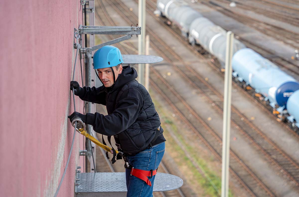 Nach der Vorbereitung erreichst Du Höhen von bis zu 50 Metern und genießt während des Kletterns spektakuläre Ausblicke auf den Kölner Dom oder das malerische Siebengebirge. Diese unvergesslichen Panoramen machen Deine Zeit am Klettersteig besonders eindrucksvoll. Nachdem Du die verschiedenen Herausforderungen gemeistert hast, entscheidest Du selbst, ob Du per Base-Jump oder über eine Leiter wieder den Boden erreichst.