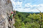 Nach dem gemeinsamen Abstieg endet der Tag gegen 18:00 Uhr am Parkplatz in Hirschbach. In der Regel startest Du zuerst in der Höhle und dann am Klettersteig – wetterbedingt kann die Reihenfolge aber variieren.