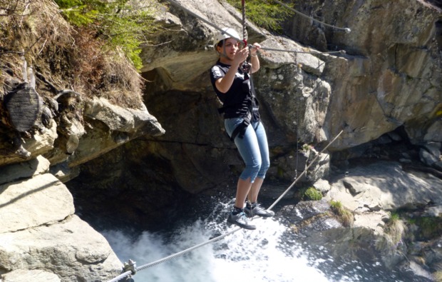 Aufstieg der Extraklasse verschenken: Überrasche Deinen liebsten Kletteraffen und erklimmt zusammen beim Klettersteig in Haiming den Stuibenfall.