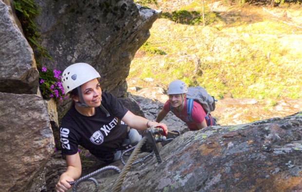 Gemeinsam geht es mit dem Kleinbus zum Klettersteig. Dort angekommen könnt Ihr Euren Augen kaum trauen. Schon unten hört Ihr das Rauschen des Wasserfalls. Ihr könnt es kaum abwarten die Felswand hochzuklettern. Meter für Meter geht es weiter in die Höhe. Mit jedem weiteren Griff steigt die Aufregung und das Bauchkribbeln. Oben angekommen wird der Aufstieg mit einer atemberaubenden Aussicht belohnt. Ihr seid über jeden Schritt, den Ihr gemacht habt, froh und jede Anstrengung ist bei dem Anblick über die Landschaft vergessen. Fangen die Finger vor Aufregung schon an zu kribbeln?
