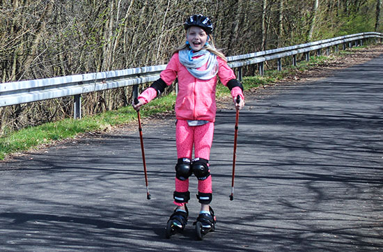 Fertig eingelernt? Dann kann es jetzt losgehen! Deine Skikes geben Dir einen sicheren Halt, da sie mit Luftreifen und fest eingebauten Bremsen aufgewertet sind. Die Mischung aus Inlinern und Skirollern ermöglichen es Dir bis zu 40km/h schnell zu sprinten und Du spürst den Wind über Deinen Körper streifen.