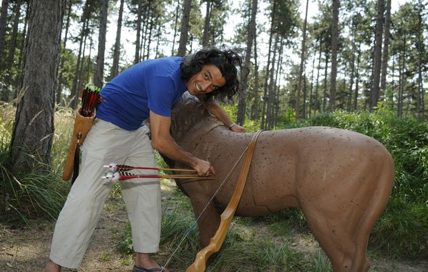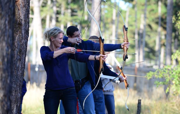 Heute wartet ein Tag voller Action, Spaß und freier Natur auf dich. Beginnen wirst du mit dem Bogenschießen. Anpirschen, den Jagdkitzel spüren, zielen – im großzügigen Wald und Steppengelände hast du die Möglichkeit, mit Pfeil und Bogen naturgetreue 3D-Großwildiere zu „jagen“. Bogenschießen bedeutet Ruhe, Konzentration, Spannung und die Befreiung mit dem Abschuss des Pfeils. Es ist eine aktive Erholung für Körper, Geist und Seele. Lass den Alltag hinter dir und erlebe die Faszination dieser archaischen Jagdmethode. Du entscheidest, ob du alleine oder in Gruppen „jagst“, ob du den Parcours eigenständig bezwingen oder durch einen Bogenguru begleitet werden willst. Wenn du alle Tiere erlegt hast geht es weiter zum Klettergarten.