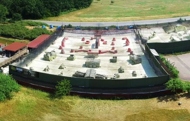 Nachschub an Paintballs kannst Du vor Ort erwerben. Bitte beachte, dass Du aus rechtlichen Gründen für einen Tag eine Vereinsmitgliedschaft übernehmen und einen Haftungsausschluss unterzeichnen musst. Gespielt wird mit Lebensmittelfarbe, die problemlos aus den Textilien ausgewaschen werden kann. Für größere Gruppen kann das Spielfeld zu einem exklusiven Termin gebucht werden.