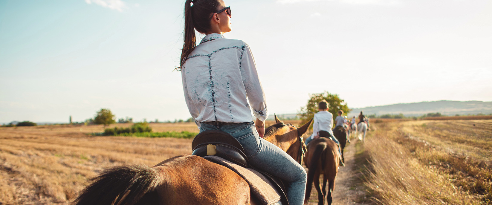 - Reiten auf dem Reitplatz oder Gelände (geführt)
