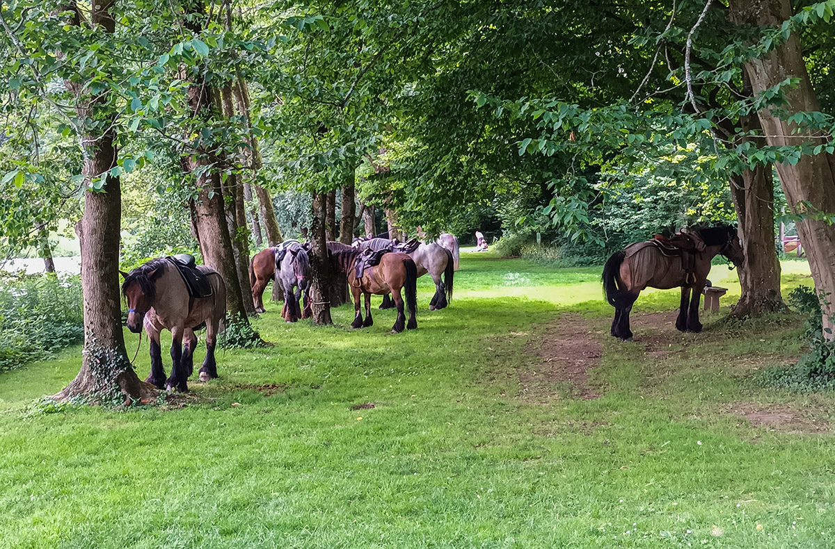 Bei diesem besonderen Erlebnis lernst Du die gutmütigen Kaltblüter aus nächster Nähe kennen. Bevor Euer gemeinsamer Ausritt losgeht, holst Du Deinen neuen Freund aus dem Stall und striegelst ihn ausgiebig. Danach sattelst Du Dein Pferd und schwingst Dich auf seinen Rücken. Wow, von hier oben hat man eine tolle Aussicht! Voller Vorfreude wartest Du darauf, dass es losgeht.