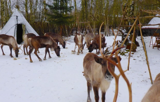 Die nordischen Hirsche von der Gattung der Tundra-Rentiere haben ihren ursprünglichen Lebensraum in Lappland, fühlen sich aber auch im deutschen Reinhardswald, im Norden Hessens, wohl. Hier leben sie in einer kleinen Herde und warten auf Eure gemeinsame Wanderung. Wusstet Ihr, dass männliche Rentiere ihre Geweihe Anfang Dezember abwerfen, während die Weibchen ihre kleineren Geweihe den ganzen Winter lang behalten? Dieses, und noch mehr interessantes am und um das Rentier erlebt ihr „live“.