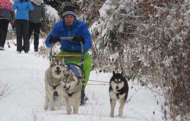 Je nach Witterung und Schneeverhältnissen finden die Ausfahrten auf einem Schlitten oder einem Trainingswagen statt.