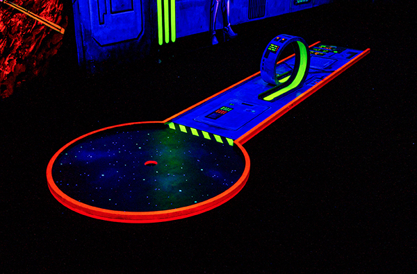 3D Schwarzlicht Minigolf spielen auf 18 herausfordernden Bahnen in Asperg