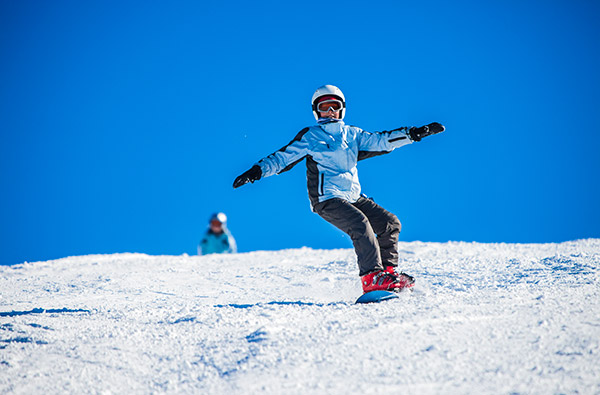 - Erlernen von Bremsen, sicherem Fallen, geradeaus fahren, sicherem Gleiten, Schrägfahrten und ersten Kurven auf blauen Pisten