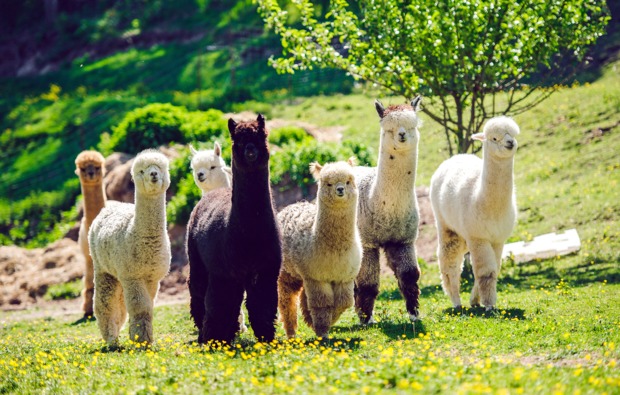 Die Alpakas stammen ursprünglich aus Südamerika und sind dort vor allem in Chile, Peru und Bolivien anzutreffen. Sie werden für ihre kuschelige Wolle geschätzt. Und, falls ihr Euch schon Sorgen gemacht habt: Genau wie ihre Verwandten, die Lamas, verteidigen Alpakas Rang und Futter auch mal mit Spucken. Das betrifft aber fast immer Artgenossen. Ihr könnt Euch also in Sicherheit wiegen! Alpakas sind, wie wir Menschen, nicht gerne alleine und lieben die Gesellschaft. Das macht sie mit ihrer zutraulichen Art zu perfekten Wanderpartnern für Euch!