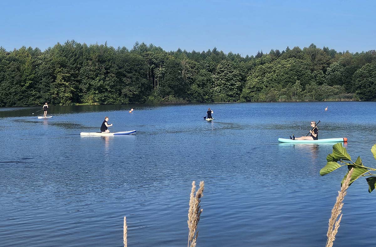 SUP-Yoga auf dem See in Seck schenkt Euch kraftvolle Momente inmitten ruhiger Natur. Während Ihr sanft über das Wasser gleitet, werden Körper, Atem und Geist eins mit dem See. Die Yogaeinheit findet auf einem Stand-up-Paddle-Board statt – umgeben von Vogelstimmen, Spiegelungen der Sonne und der beruhigenden Weite der Landschaft. Jede Bewegung gewinnt an Tiefe, weil die Instabilität des SUP Boards Euch fordert, ohne zu überfordern. Selbst im Savasana trägt das Wasser Euch sanft – ein Zustand tiefer Entspannung. Dieses Erlebnis bringt Euch in Einklang mit Euch selbst, eingebettet in eine friedliche Kulisse. Wenn Ihr Euch nach Ruhe, Balance und besonderen Momenten sehnt, seid Ihr hier genau richtig. Lasst Euch vom Rhythmus des Wassers tragen.