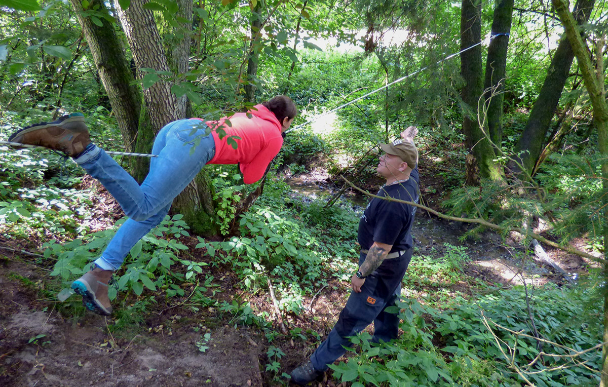 Neuer Tag und es gibt Neues zu erleben oder zu überleben. Nach dem Frühstück steht mit dem Marsch der erste Frühsport auf der Tagesordnung. Mit einem Seil überwindest Du das nächste Hindernis bravourös. Doch was machst Du, wenn sich jemand verletzt hat? Du musst niemanden zurücklassen, denn Du kennst die verschiedenen Tragemethoden. Gemeinsam mit der Gruppe meistert Ihr alles. So spannend und lehrreich hättest Du es nicht erwartet. Du bist begeistert!