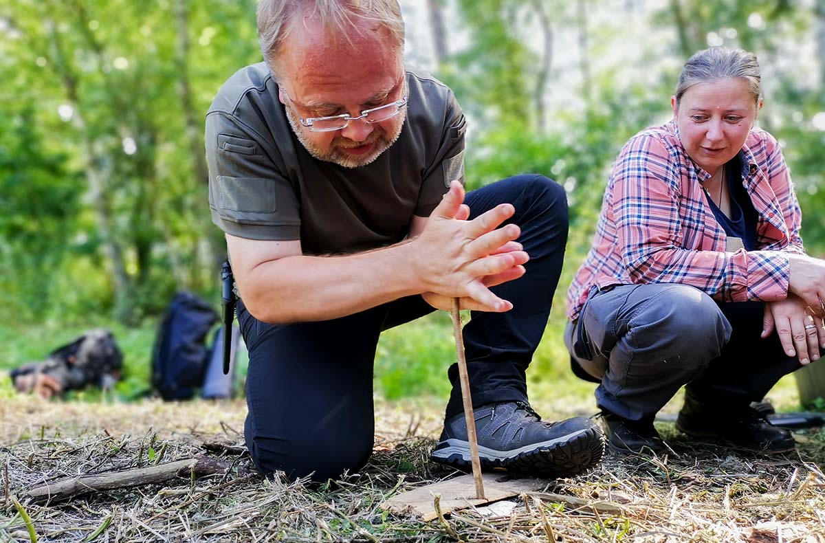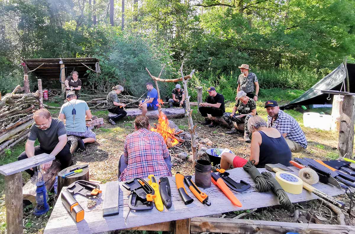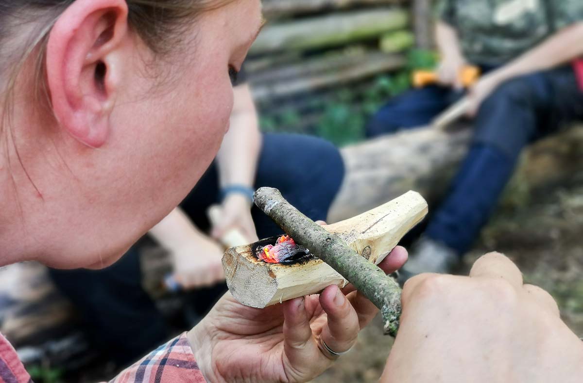 • Vermittlung von Survival-Grundlagen wie Waldlagerbau, Feuer machen, Pflanzenkunde, Werkzeug-, Holz- und Knotenkunde, Kochen und mehr