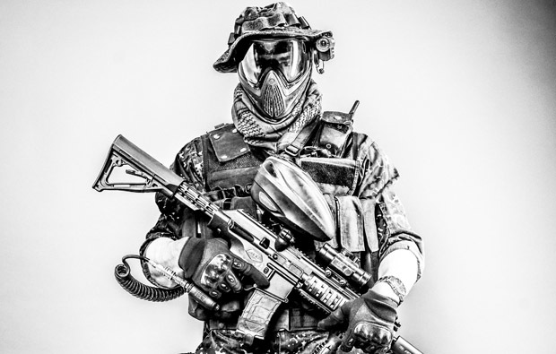 Wird gestellt: SEAL Hut, Markierer inkl. Munition, Tarn Overall, Sturmhaube, Weste, Tarnschminke