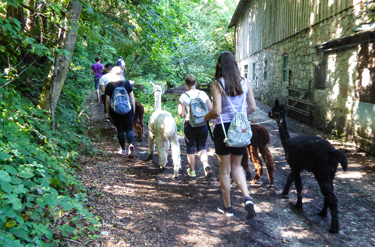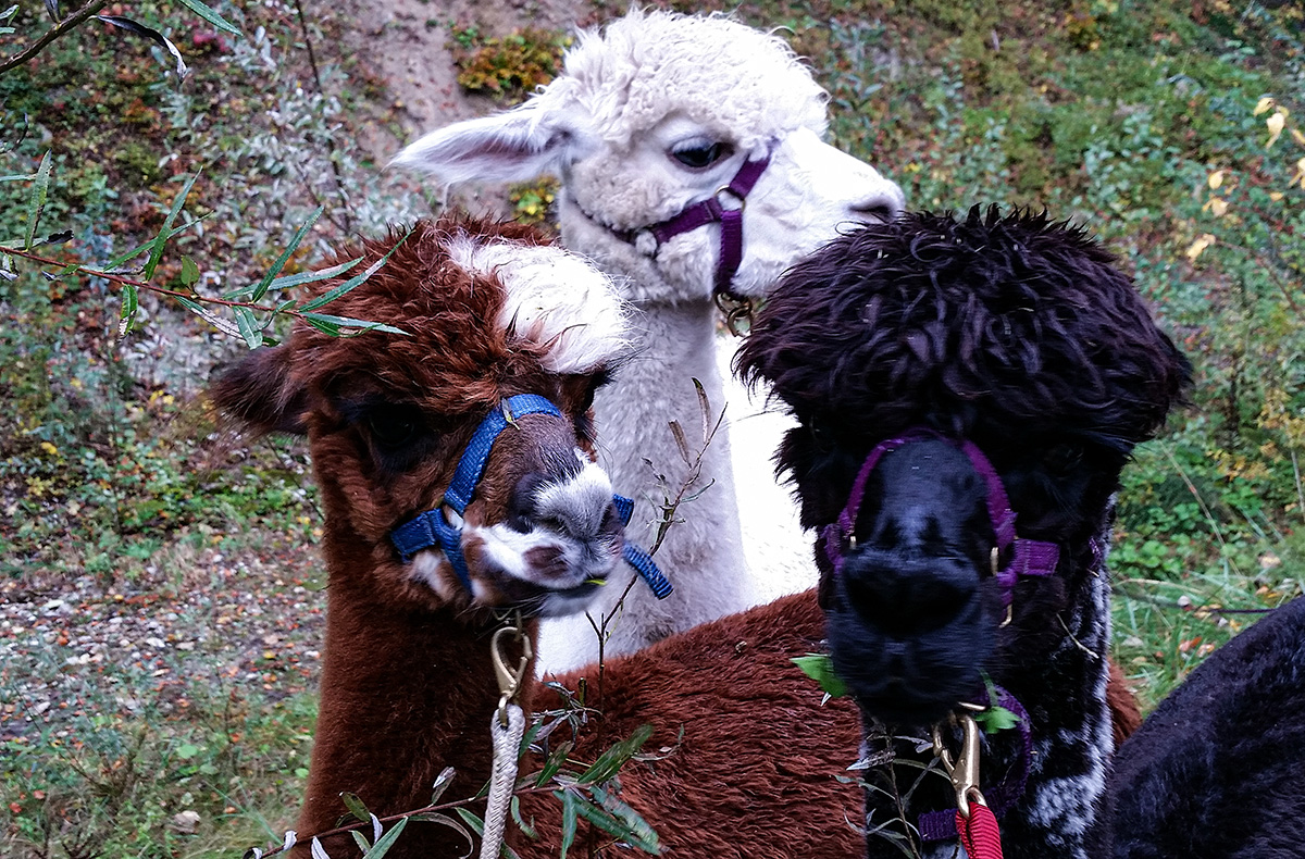 Kuscheliges Fell und tiefdunkle Augen. Mit ihrem unglaublich ruhigen und friedlichen Charakter haben die Tiere eine sehr positive Wirkung auf uns Menschen. Kleine Streicheleinheiten zwischendurch lassen die Alpakawanderung zum wohltuenden Erlebnis für Körper und Geist werden. Die Vierbeiner nehmen Dich mit für einen Moment Wellness für die Seele.