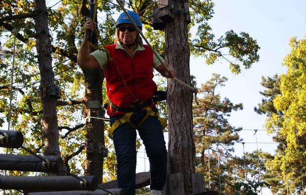 Genieße einen Tag voller Adrenalin und Abenteuer, hoch in den Kronen des Nadelwalds im Waldklettergarten in Gänserndorf.