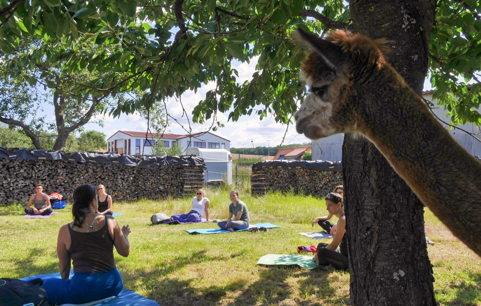 Ein Tag im Grünen voller Natur und Entspannung wartet auf Dich! Erfahre ein ganz neues Wohlgefühl beim Yoga auf der Alpakawiese in Arnstein. Kräuterwanderung, Mittagessen und Alpaka-Spaziergang inklusive!