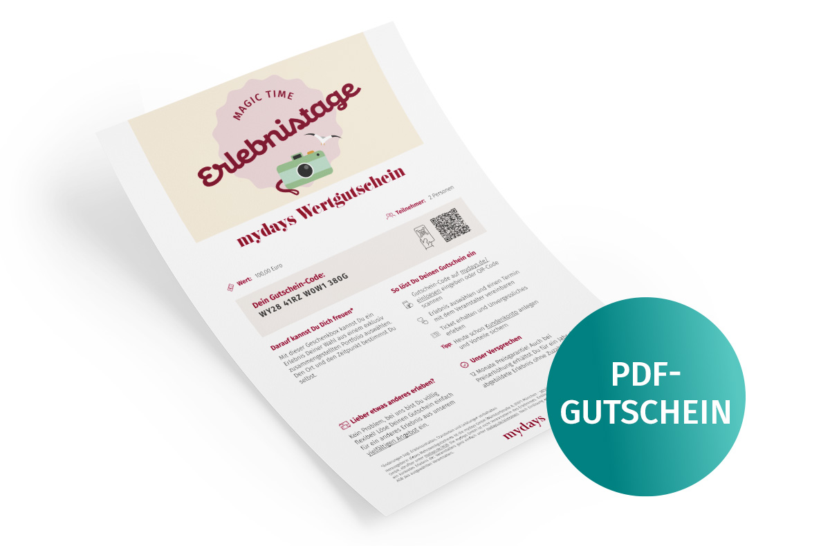 - Einlösbar in über 500 Erlebnisse der Kategorie Erlebnistage