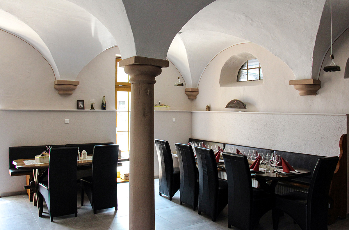 Interaktive Weinprobe im romantischen Kreuzgewölbe oder im wettergeschützten Winzerhof