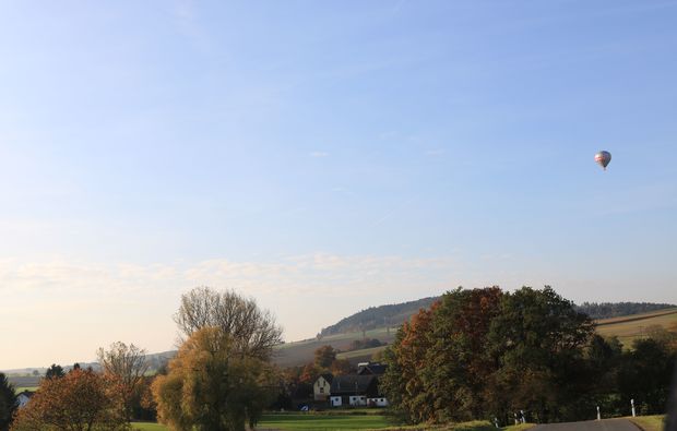 Am Startplatz angekommen werdet Ihr von Eurem langjährigen Piloten zu Eurer Ballonfahrt über Zweibrücken begrüßt und eingewiesen. Der Ballon liegt jetzt noch als flache Hülle auf dem Boden, während die Helfer alle Vorbereitungen treffen – schon dabei zuzusehen, ist ein Erlebnis für sich. Wenn alles fertig ist, steigt Ihr in die Gondel – und die Aufregung steigt. Jetzt gibt es kein Zurück mehr: Die Leinen werden gelöst, einige Sandsäcke werden über Bord geworfen und mit einem sanften Ruck verlasst Ihr den sicheren Boden unter Euren Füßen – ein unglaubliches Gefühl! Nach einem spektakulären Start geht es in gemächlichem Tempo und mit Seelenruhe geradewegs dem Himmel entgegen! Unter Euch winken Freunde und Bekannte, während Ihr Hausdächer und Baumwipfel passiert, langsam, aber sicher im höher steigt und die endlose Weite um Euch herum immer greifbarer wird. Felder und Wälder scheinen zu schrumpfen, Straßen und Flüsse werden zu kleinen Linien und Autos und LKW verwandeln sich zu kleinen Spielzeuggefährten in weiter Ferne. Der Horizont präsentiert Euch spektakuläre Farbenspiele, Vöglein sagen Guten Tag und kleine Schäfchenwolken ziehen unter Euch her. Während Ihr diese atemberaubenden Aussichten in vollen Zügen genießt, lasst Ihr Euch frische Höhenluft um die Nase wehen, vom Wind treiben und erlebt den Traum vom Fliegen am eigenen Leib! Eure Ballonfahrt über Zweibrücken dauert 60 bis 90 Minuten, immer abhängig von Witterung und Windrichtung. Insgesamt solltet Ihr für dieses faszinierende Erlebnis jedoch vier bis fünf Stunden einplanen. Schließlich ist mit dem Flug noch lange nicht alles vorbei! Abgesehen von der aufregenden Vorbereitungszeit steht Euch auch nach der Landung noch ein echtes Highlight bevor: Es folgt die traditionelle Ballonfahrertaufe, bei der Erstflieger in den Club der Ballonfahrer aufgenommen werden. Standesgemäß wird eine Flasche Sekt geköpft und Euch wird eine wohlverdiente Urkunde überreicht! Cheers auf ein Abenteuer, das Ihr ganz bestimmt nicht mehr vergessen werdet!