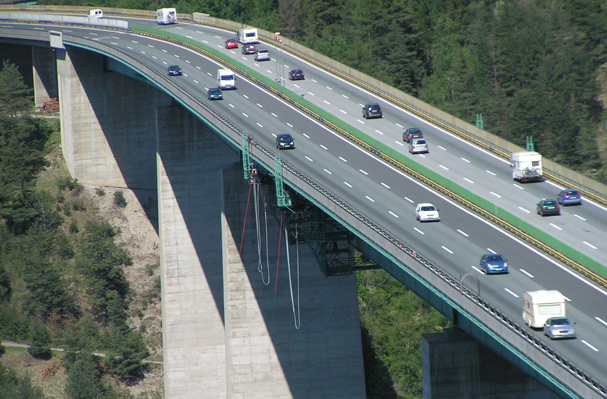 Die Europabrücke bei Innsbruck, Teil der Brennerautobahn ist mit einer Höhe von 190 m über Grund die zweithöchste Brücke Europas (nach dem Viaduc de Millau). Die Brücke überspannt das Wipptal zwischen Patsch und Schönberg.