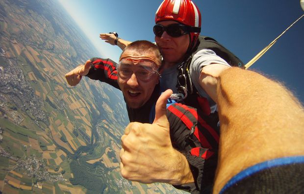 Du stehst auf Nervenkitzel und willst etwas Neues für Dich ausprobieren? Bei Deiner aktiven Teilnahme am Fallschirm-Tandemsprung in Bitburg kommst du voll auf Deine Kosten, denn beim freien Fall geht Dein Adrenalinspiegel schlagartig in die Höhe. Genieße dieses unglaubliche Gefühl von Freiheit, wenn sich der Fallschirm öffnet!