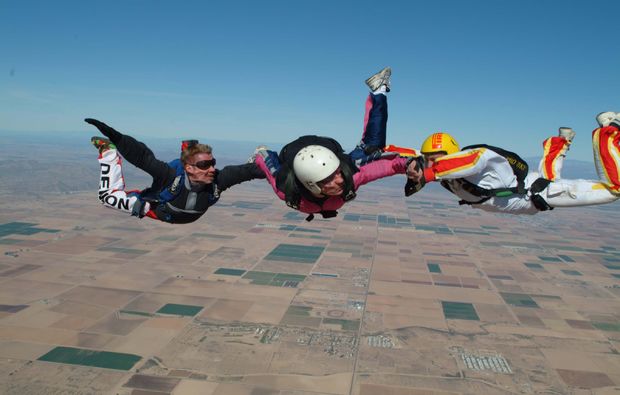 Nach einer kurzen Einweisung geht es in die Luft. In 4.000 Metern Höhe öffnet sich die Flugzeugtür und Du springst zusammen mit einem erfahrenen Tandemmaster. Spüre die sanfte Brise und genieße den Moment, wenn Du sicher und sanft zurück zur Erde gleitest.