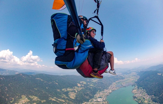 Freu Dich auf wunderschöne Aussicht und ein absolut einzigartiges Erlebnis. Ein Gefühl der Freiheit durchströmt Deinen Körper während Du von den Bergen lautlos talwärts gleitet. Bewundere die Kärntner Berg- und Seenlandschaft aus der Vogelperspektive und erfreue Dich an der atemberaubenden Aussicht, während Ihr durch die Lüfte fliegt und der Wind durch Deine Haare bläst. 20-30 Minuten Schwerelosigkeit, bis Du sanft auf der großen Landewiese ankommt.
