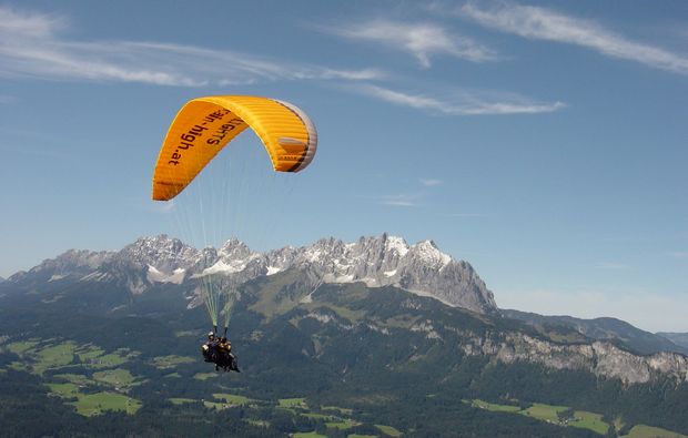 Bei einem Gleitschirm-Tandemflug in den Kitzbüheler Alpen kannst Du dem Alltagsstress einfach davonfliegen. Schwebe lautlos in das Tal und genieße einen atemberaubenden Ausblick auf die sich unter Dir ausbreitende Landschaft. Mit einem erfahrenen Piloten an Deiner Seite erlebst Du hier mit Sicherheit Deinen persönlichen Höhenflug.